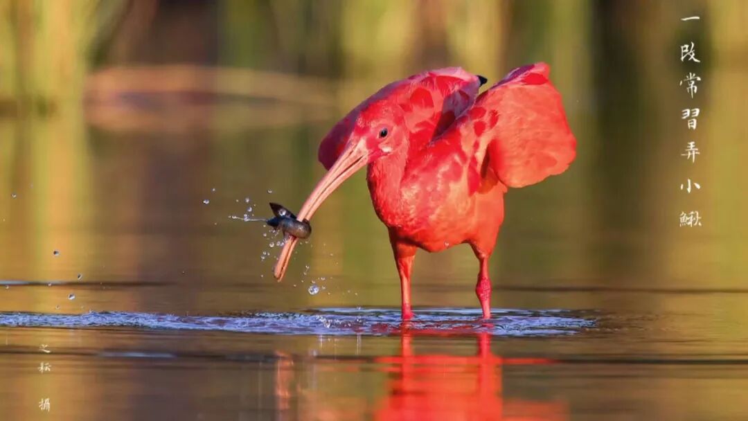 这只美洲红鹮自2023年8月惊现广西南宁,就成了鸟类摄影爱好者的追捧,开始栖息于南宁园搏园的田园,后因稻田贲洒农药,它不得不消失人们的视野,直到当年11月再现于南宁市郊的良庆区一处人工湿地,更是引起更大的轰动,视频、图片在网上传开,一时成了网红,观者络择不绝,全国各地的鸟类摄影爱好者也纷至沓来,每天都有100至200人前往目睹天生丽质的红鹮。此时的它,仍然与几只白鹭为伴,一起在水中觅食,从开始胆怯见人就飞,到后来面对上百支镜头和咔咔作响的快门声,能近距离的安逸捕食,且体态日益丰满,毛色日益光泽亮丽,简直是可爱之极。