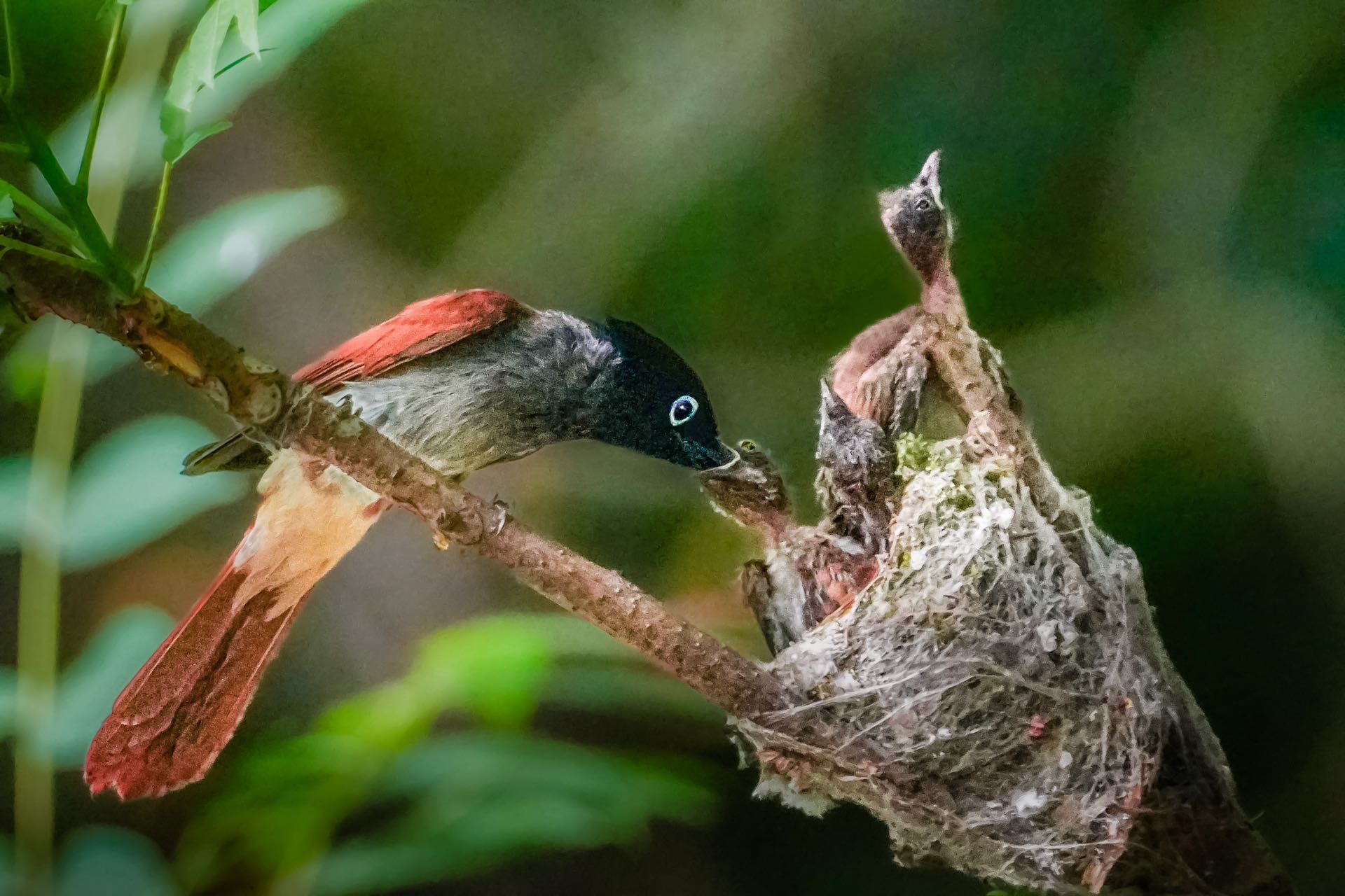 绶带喂雏鸟瞬间