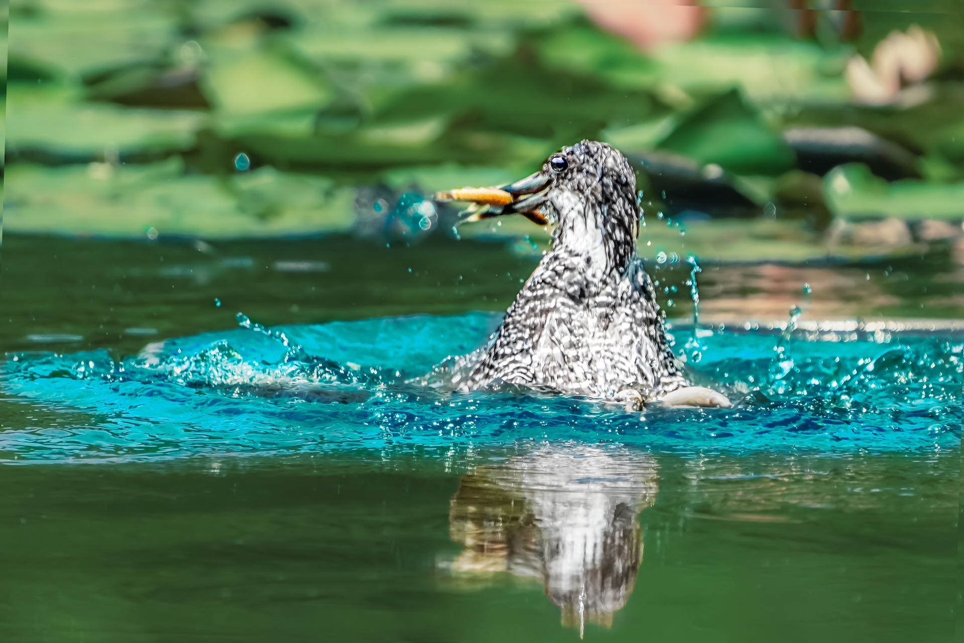 冠鱼狗相伴水花