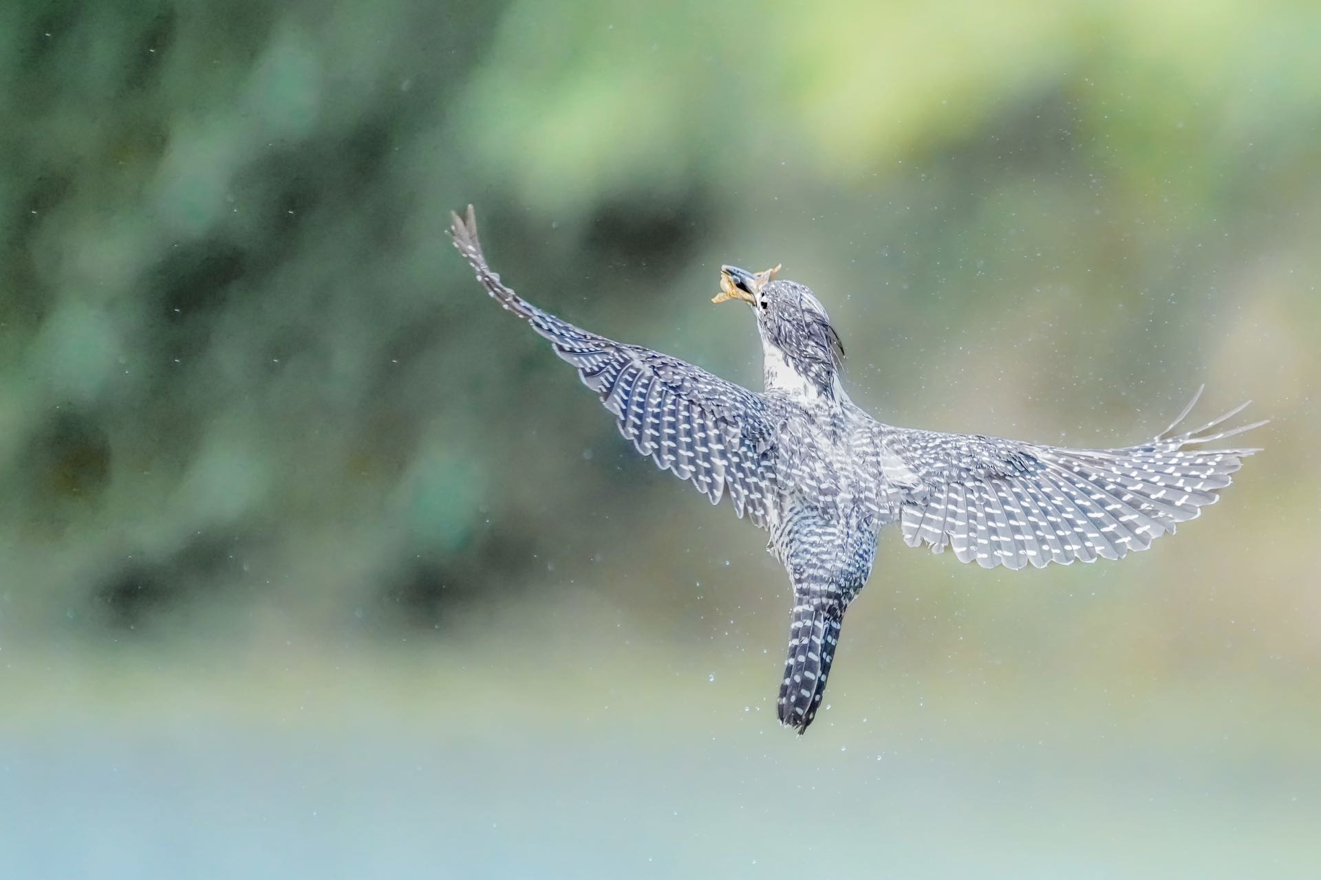 冠鱼狗捕到美食返航