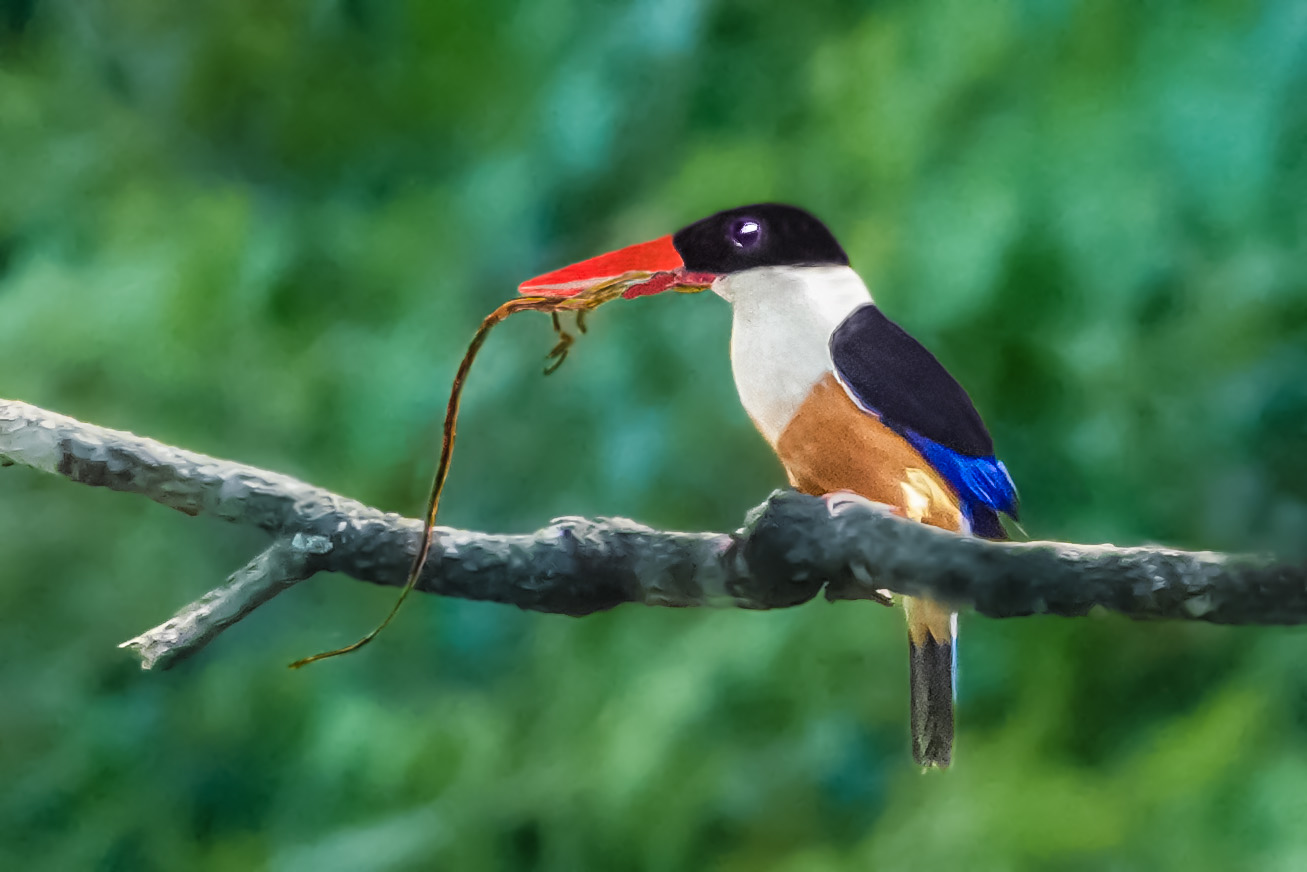 蓝翡翠咬住蜥蜴 |