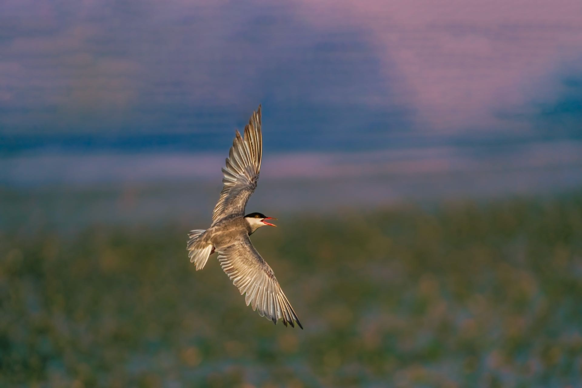 须浮欧迎着夕阳