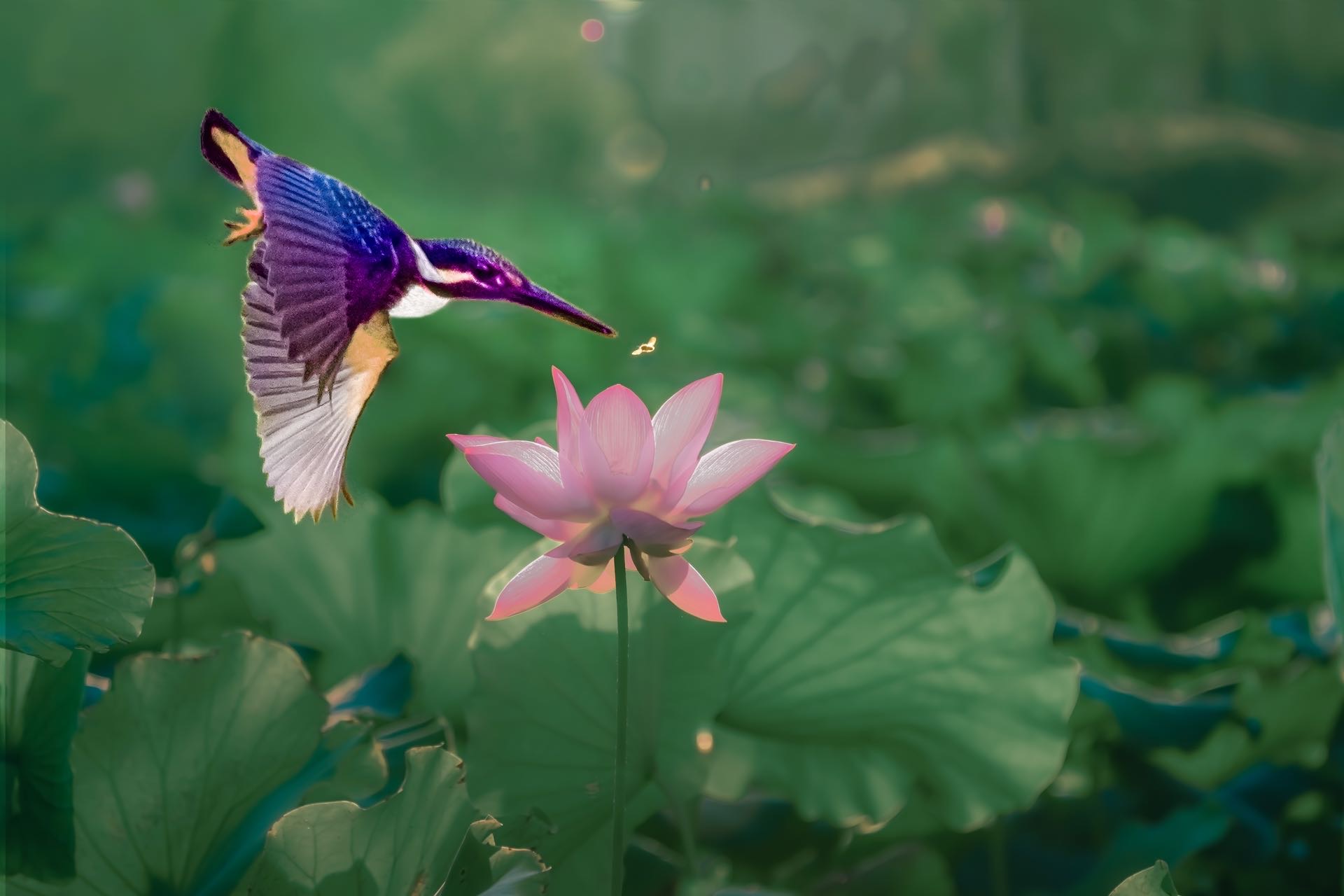翠鸟观荷 |