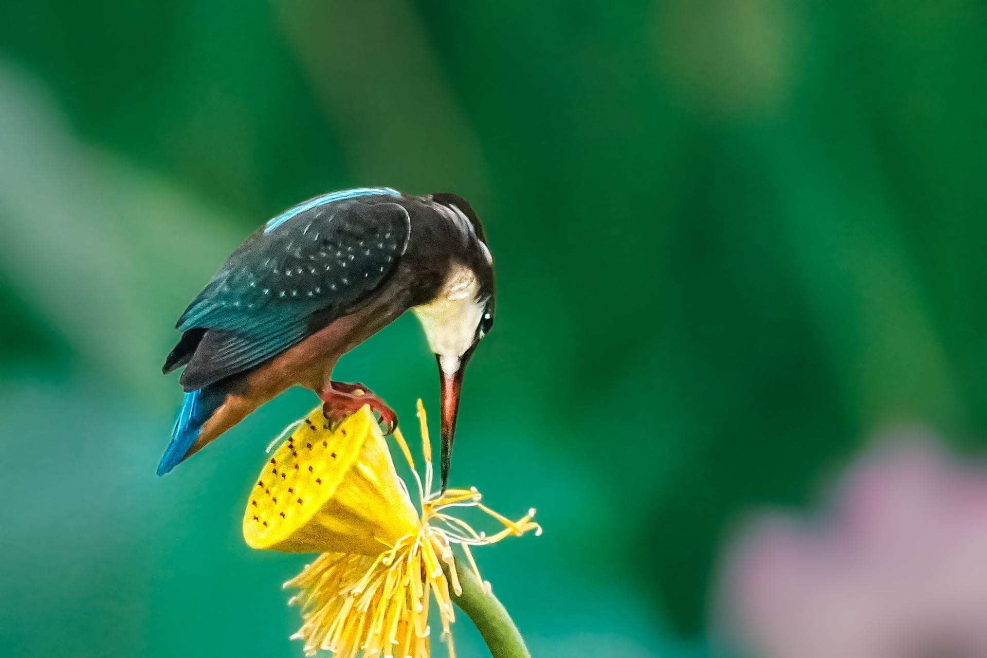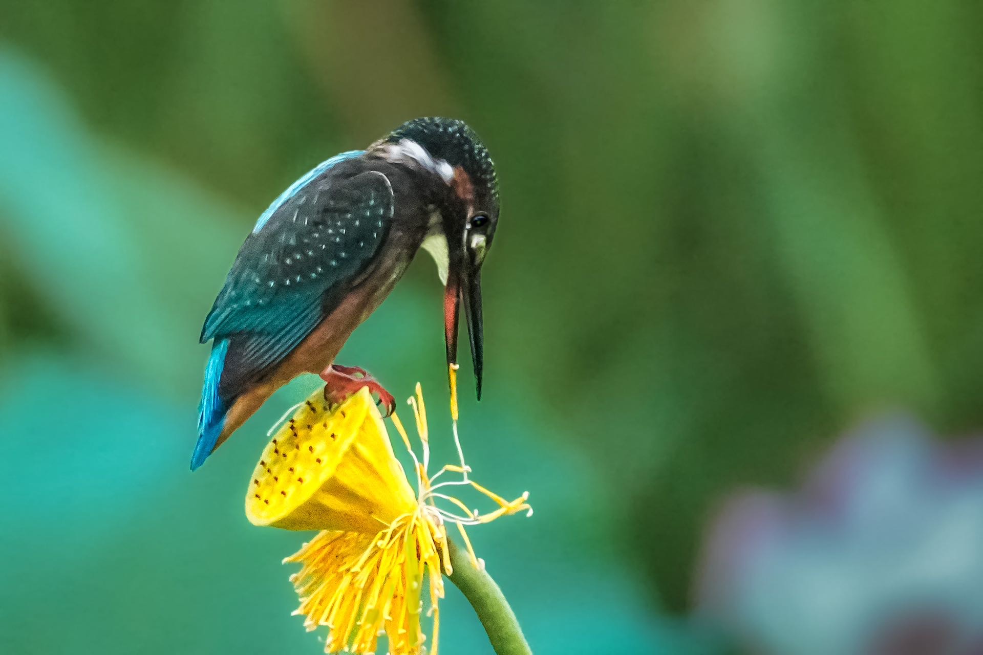 翠鸟品味莲蓬 |