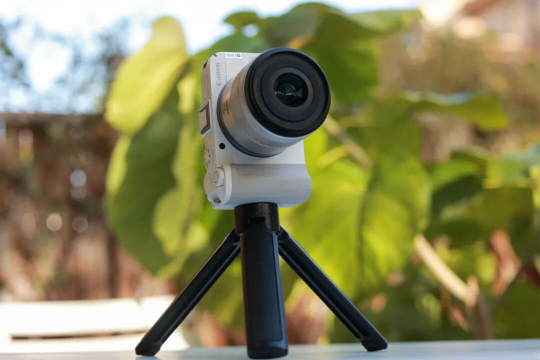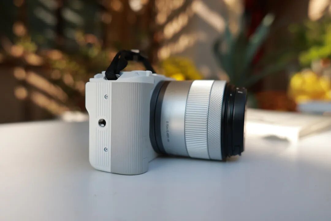 在实际使用体验方便,佳能EOS R50 V的机身采用了平直设计风格,单手手持长时间也没有压力。一些专为视频拍摄而新增的设计,也让这款相机使用起来方便快捷,短片拍摄按钮就在原本快门按钮位置,相机正面新增视频拍摄按钮,再搭配翻转屏和竖拍用三脚架接孔,太适合经常需要独立录制自拍出镜视频的摄影师和博主们啦。