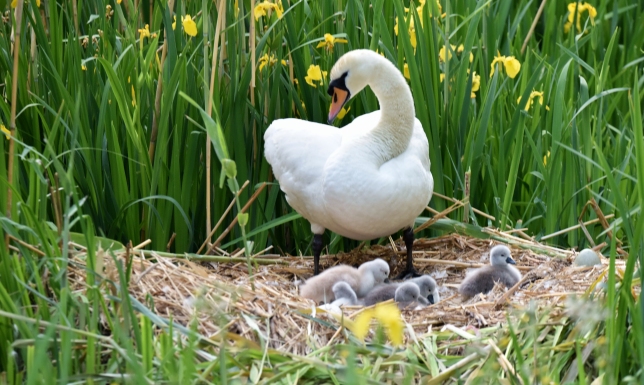 花与天鹅相映成景