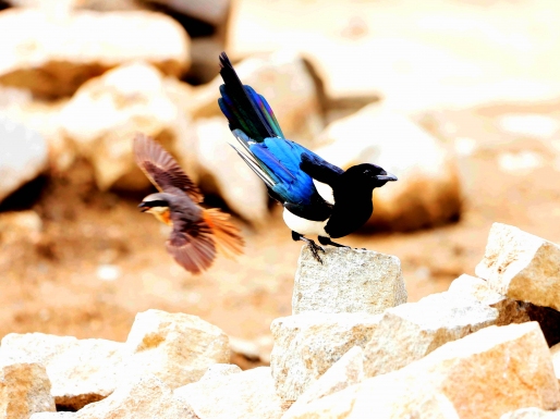 青藏喜鹊和灰背伯劳